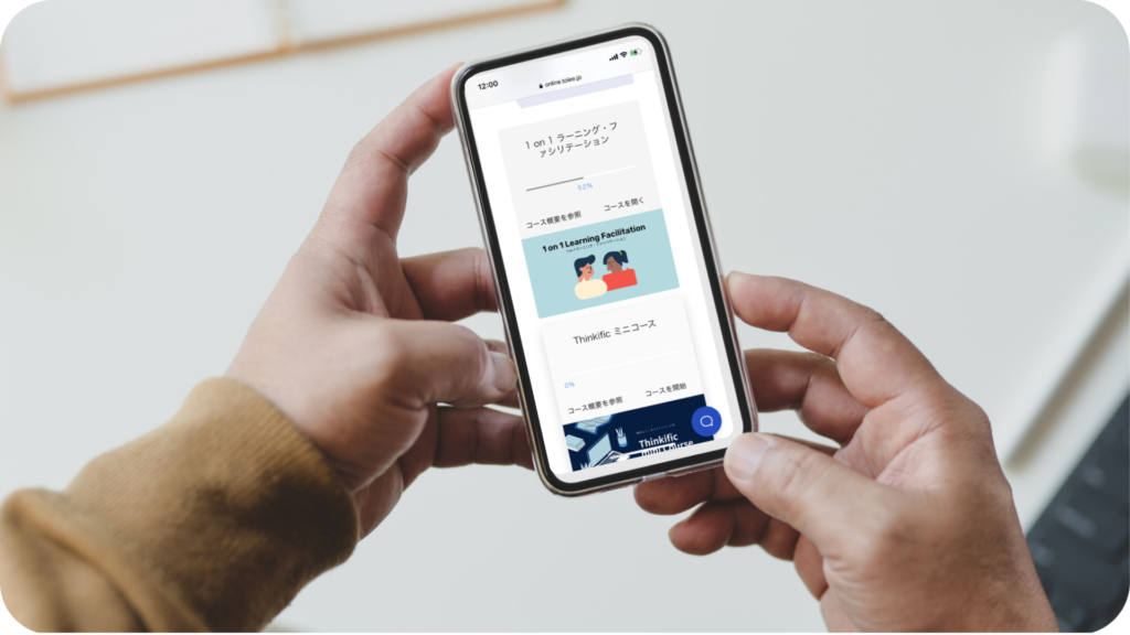 通勤中の電車の中や家事の合間などの隙間時間を活用して学べるように、オンラインコースを準備しています。倍速再生機能や、進捗管理が簡単にでき、スムーズに学ぶことができます。